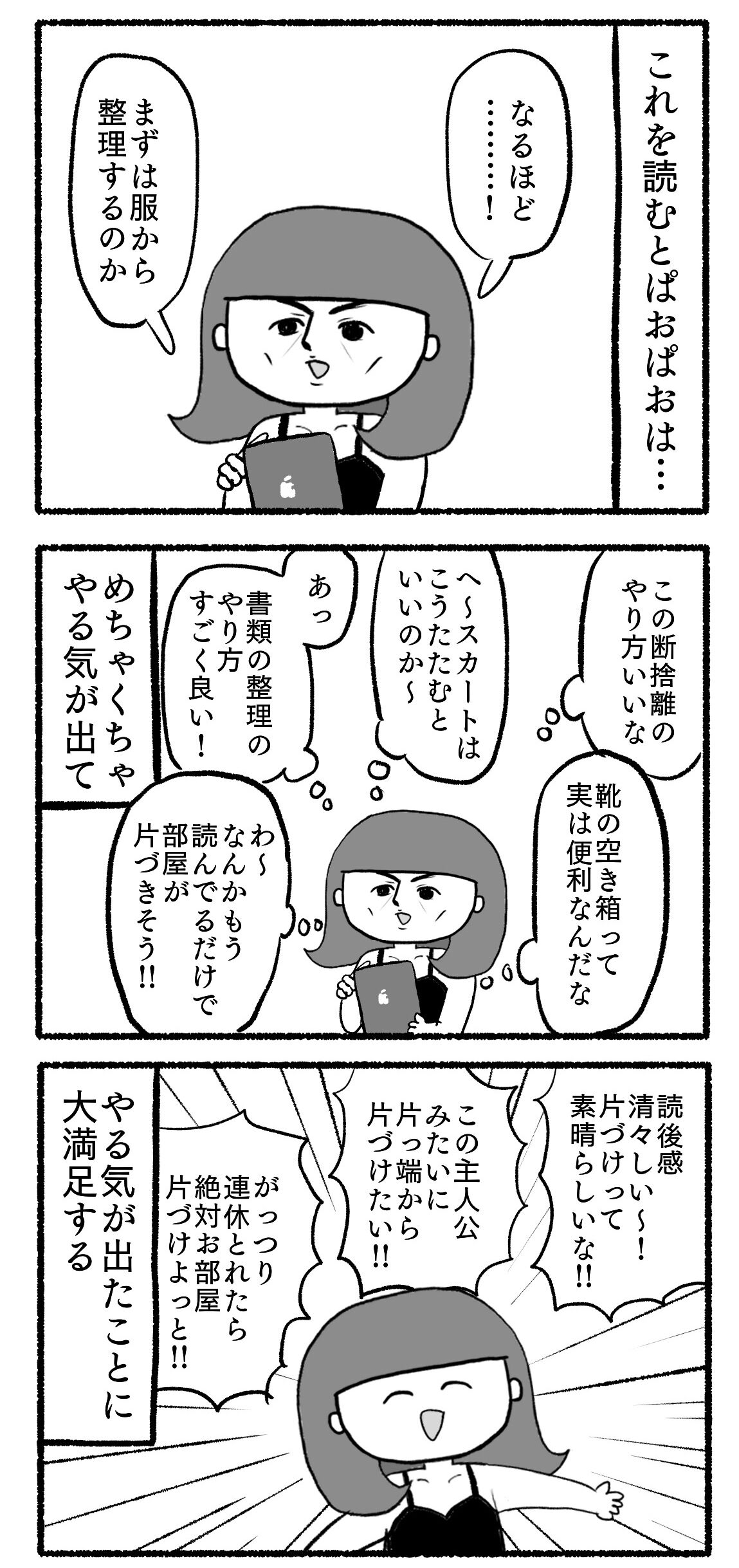 ぱおぱおとお片づけ02 2019年10月11日 大掃除することにした有名すぎて、もはや説明不要の近藤麻理恵さんの片づけ術の本のマンガ版!(Kindle版で買いました。)個人的に人気な書籍のマンガ化は苦手なものが多いんですが、これはストーリーも読みやすかったし絵もラフな感じで見やすくてかわいい!片づけしたい人 ... 続きを読む