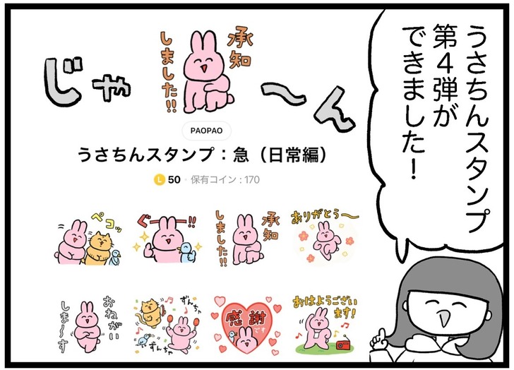 うさちんスタンプ:急(日常編)発売のお知らせ 2025年10月15日 こんにちは!ぱおぱおです。 先月に引き続き、新しいスタンプを作ったのでお知らせです! 今年もうさちんスタンプができました! 今回は「トークの始まりと終わりに使いやすい」をテーマに作ってみました。 第4弾もよろしくお願いします🎉🎉🎉 新作!うさちんスタン ... 続きを読む